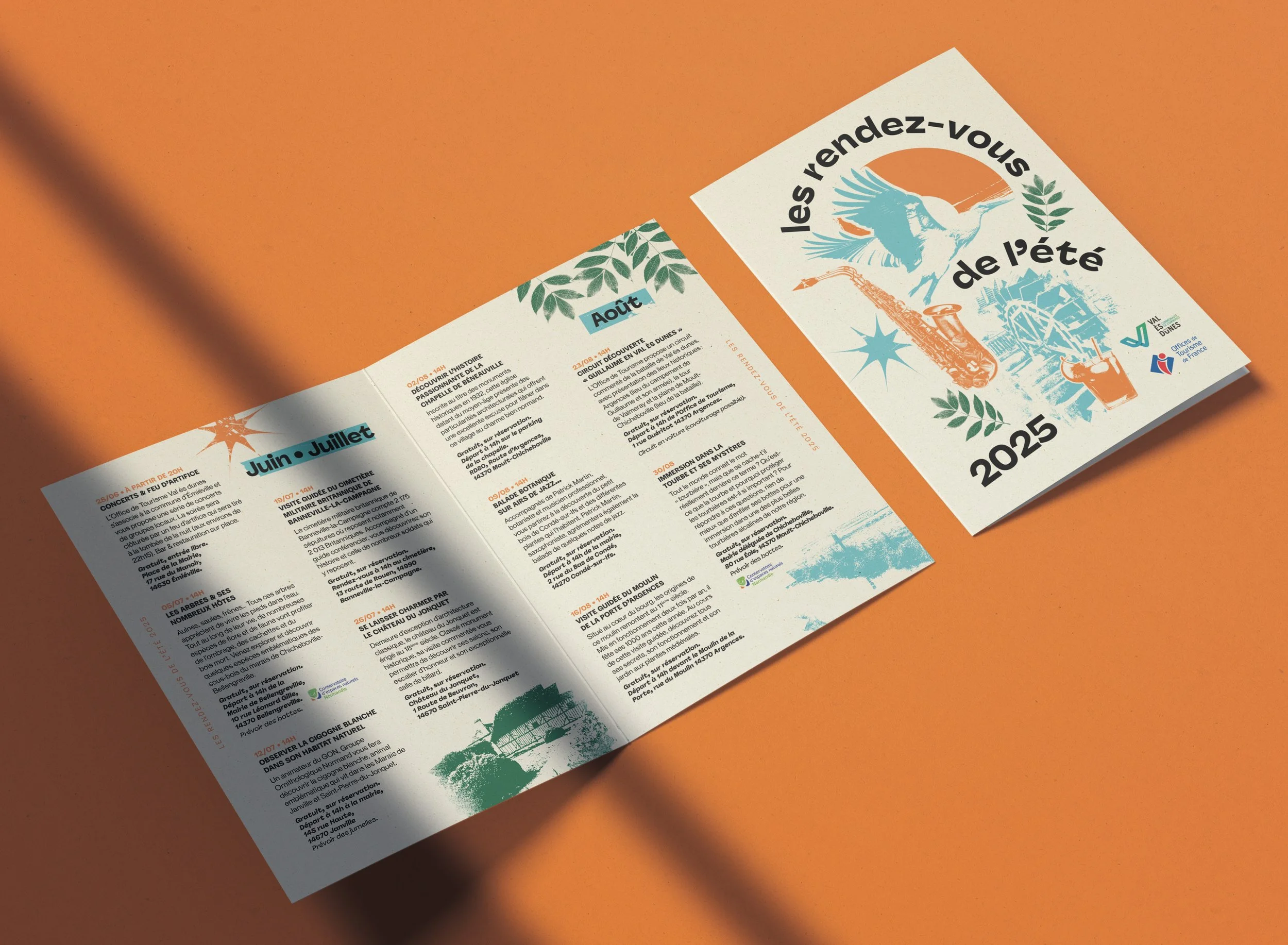 À nouveau, Paul, Clémence et Elodie de me confier la création de supports de communication pour l’Office de tourisme de Val ès dunes