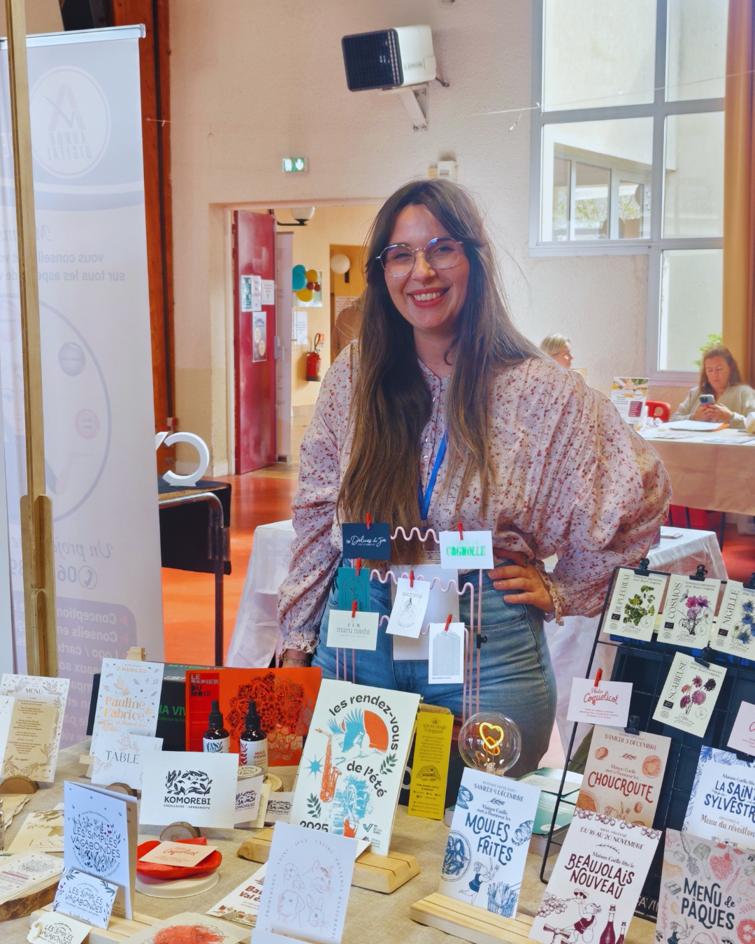 Je pensais que le stress allait m’envahir, mais dès que j’ai commencé à préparer mon stand, toute l’appréhension s’est envolée. Ce fut l’occasion de présenter mon savoir-faire et sa dimension artisanale, qui me tient tant à cœur, de promouvoir les projets de mes client·es, et d’échanger sur la communication visuelle avec des personnes portant des projets locaux inspirants.