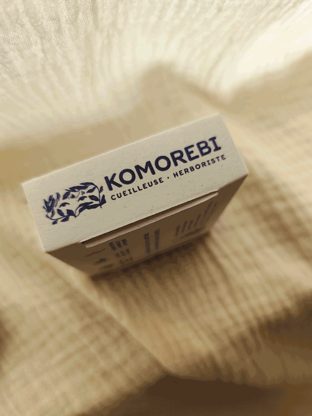 Amandine m’a sollicitée pour créer l’univers de sa marque Komorebi. Après un parcours sur différents continents dans le domaine de l’éducation, Amandine a changé de voie en suivant trois ans d’études en herboristerie à l’École Lyonnaise des Plantes Médicinales puis un an de formation agricole. Aujourd’hui, elle cultive, cueille et transforme ses plantes en Vendée en agriculture syntropique. Nos sensibilités communes pour le bleu, le végétal, le sauvage et surtout la beauté du cyanotype ont donné lieu à une identité visuelle unique.